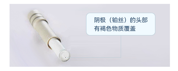 這種情況下,將內(nèi)電極的頭部對(duì)著光源觀察陰極,可以看到陰極表面顯露出黑色??墒褂脴?biāo)號(hào)1000目以上的砂紙?jiān)阢K絲頭部輕輕打磨數(shù)次,至鉑絲表面發(fā)亮即可。切不可過度打磨,否則會(huì)使內(nèi)電極頭部受損。