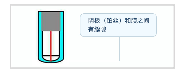 ② 鉑陰極未能接觸到溶氧膜